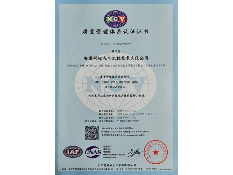 质量管理体系认证证书